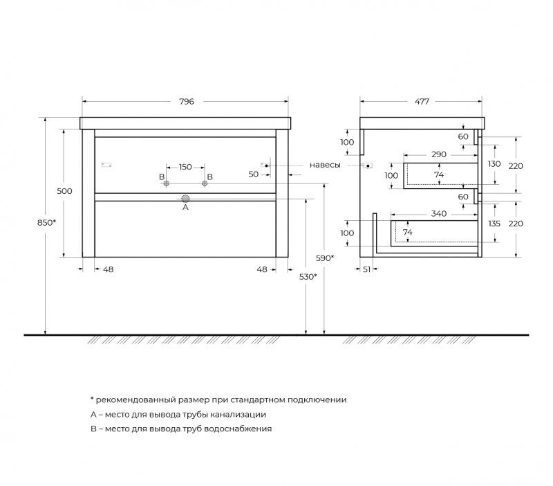 База под раковину Cezares подвесная с двумя выкатными ящиками, Дуб карамельный, 796x478x500, RELAX-800-2C-SO-RC-P купить