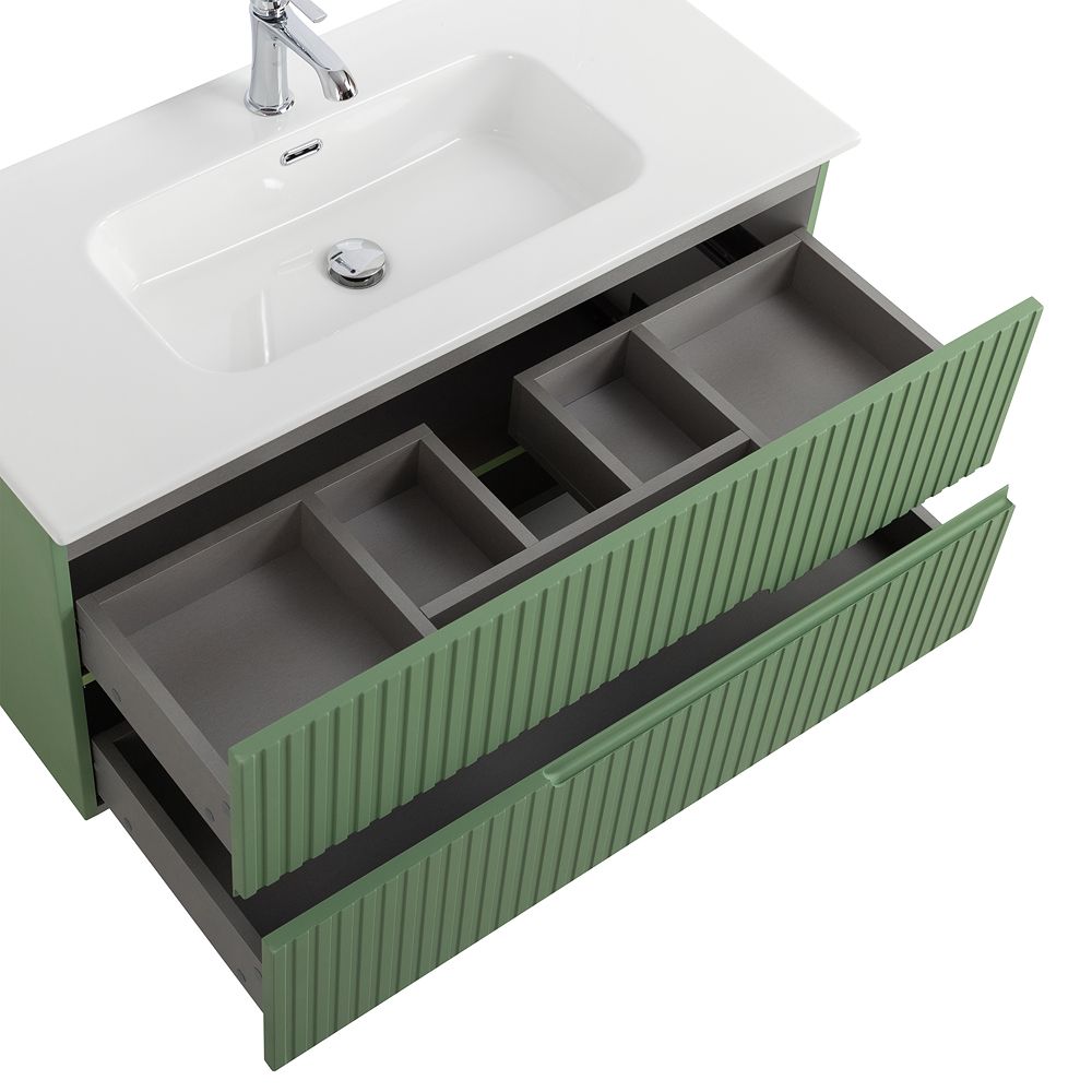 База под раковину Cezares подвесная с двумя выкатными ящиками, Фисташковый Софт, 1000x457x500, DUET-N-1000-2C-SO-PS-P