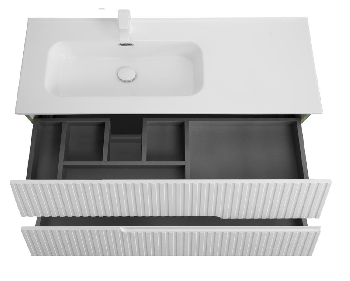 База под раковину Cezares подвесная с двумя выкатными ящиками, левосторонняя, Bianco Lucido, 1200x457x500, DUET-N-1200-2C-SO-BL-L