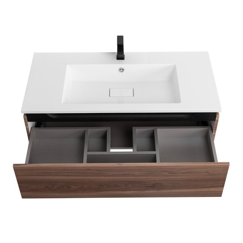 База под раковину Cezares подвесная с одним выкатным ящиком, Орех Дымчатый, 796x476x300, SLIDER-800-1C-SO-NA-P