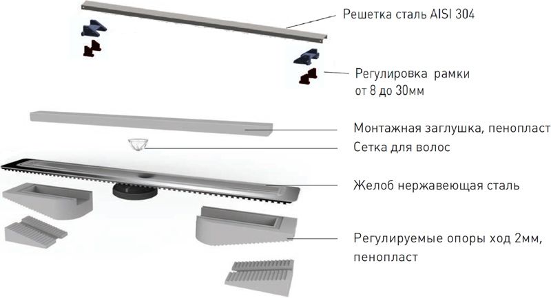 Душевой лоток Berges Wasserhaus C1 Brise 090128 30 Матовый хром купить
