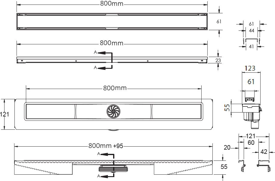 Душевой лоток Berges Wasserhaus B1 Keramik 091019 80 Хром глянец