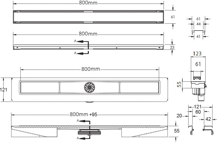 Душевой лоток Berges Wasserhaus B1 Keramik 090019 80 Матовый хром купить
