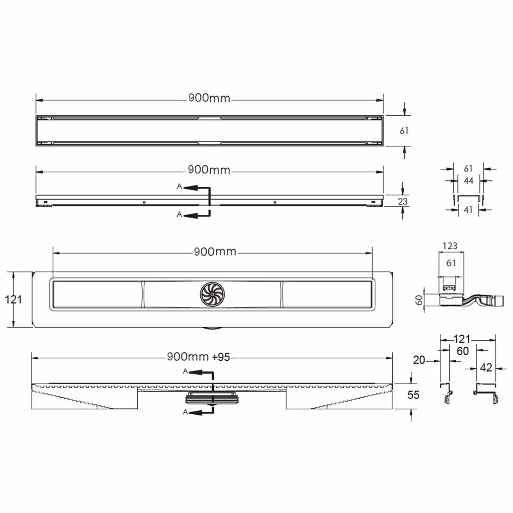Душевой лоток Berges Wasserhaus B1 Keramik 091120 90 Хром глянец