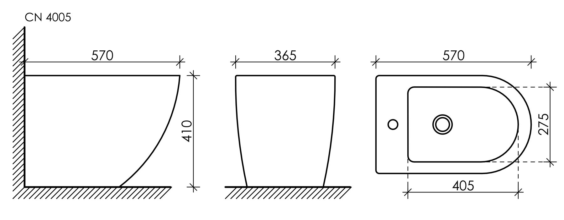 Напольное биде Metropol, 1 отверстие под смеситель, в комплекте крепеж для монтажа
