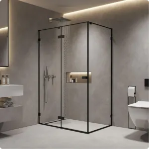 Боковая панель AQUAme AQM7409-2-9 90 см профиль чёрный матовый стекло прозрачное купить
