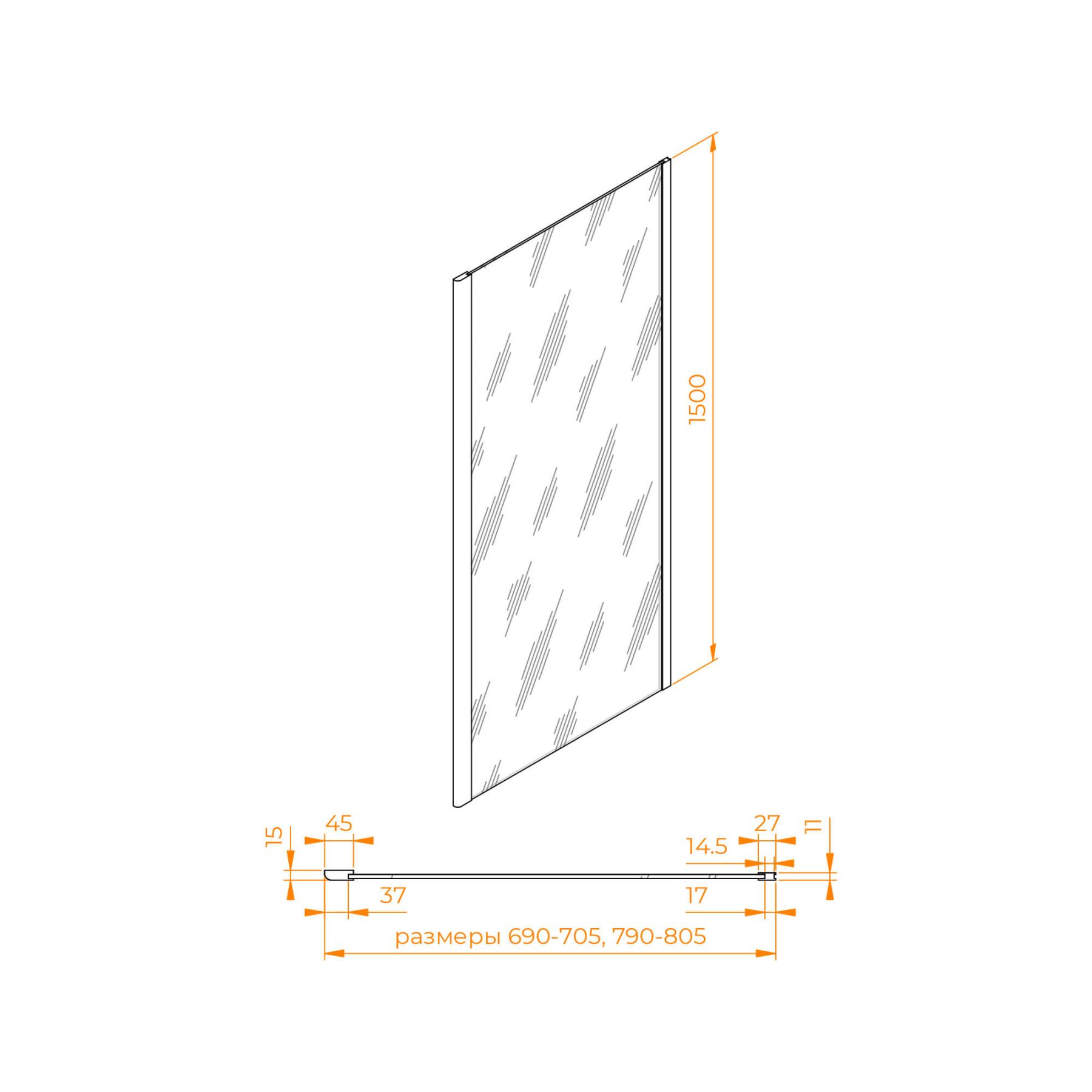 Боковая панель RGW Z-050-4 комплектуется с моделями высотой 1500 мм и цветом профиля «хром»