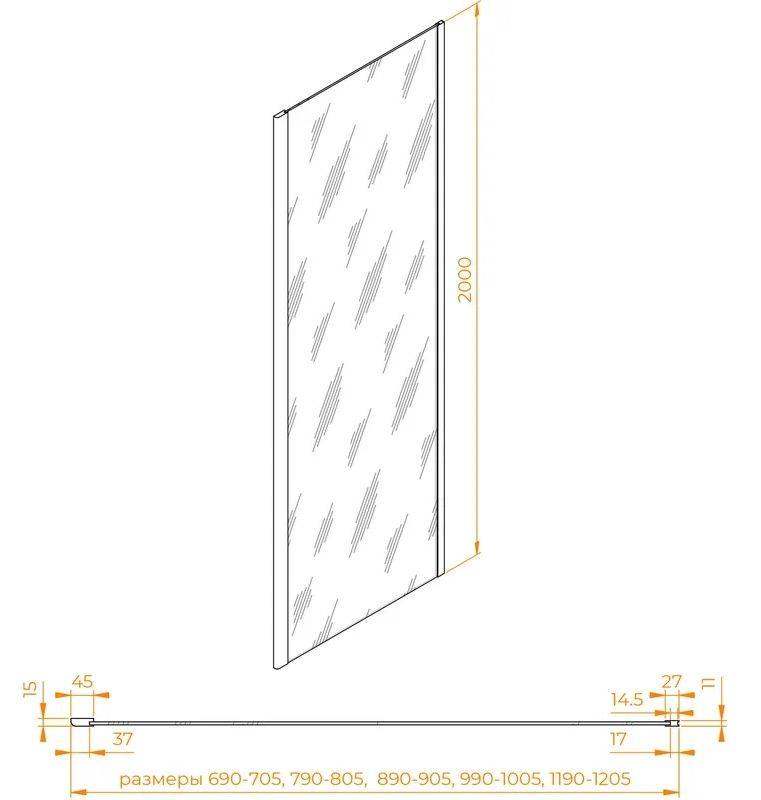 Высота панели: 200 см — оптимальная для комфортного использования душевой зоны.