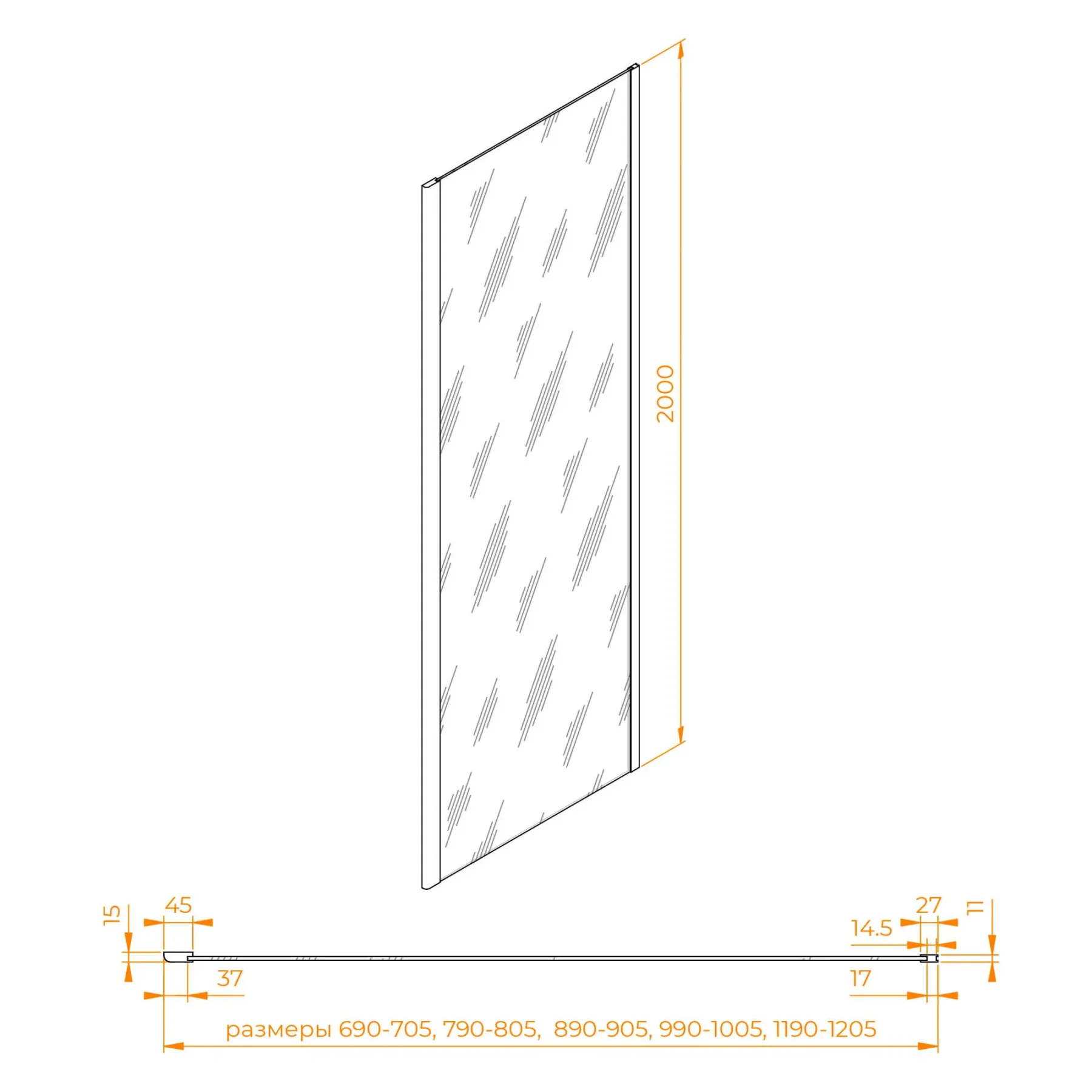 Высота панели: 200 см — оптимальная для комфортного использования душевой зоны.