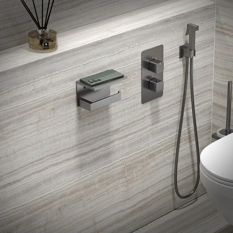 Бумагодержатель Timo Petruma 15243/18 с полкой чёрное золото купить