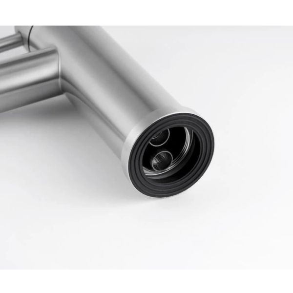 Минимализм и функциональность. Смеситель KNOTLOR SS-04 STREAMLINE изготовлен из нержавеющей стали SUS 304 и покрыт матовым защитным слоем MirrowShield. Изготовленный из высококачественной нержавеющей стали, этот кран для умывальника обеспечивает долговечность и надёжность в использовании, а также устойчивость к механическим повреждениям. Механизм смесителя для раковины SS-04 основан на керамическом картридже с рычажным управлением, что гарантирует лёгкость и точность регулировки температуры и напора воды. Излив этого смесителя для раковины фиксированный и оснащён аэратором, который способствует более равномерному и мягкому потоку воды. В комплекте идёт гибкая подводка со стандартным подключением 1/2". Смеситель оснащен системой быстрого монтажа, что позволяет установить его на раковину без особых усилий и дополнительных инструментов.Кран для раковины в ванную KNOTLOR SS-04 STREAMLINE — это идеальное сочетание современного дизайна, практичности и надёжности, которое превратит ежедневное умывание в приятный ритуал комфорта и уюта.