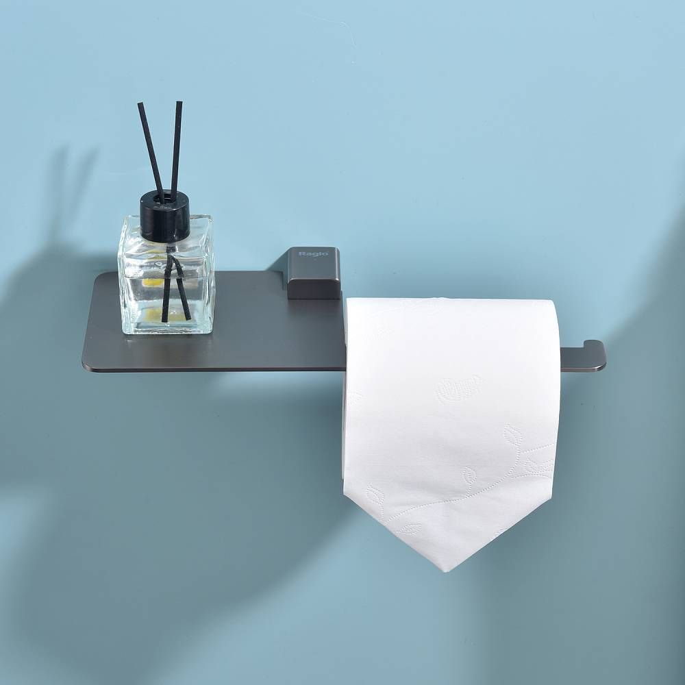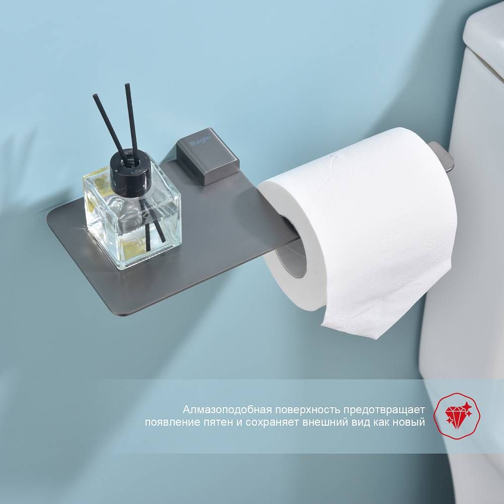 Raglo R301.03.09 Бумагодержатель с полочкой под телефон. Форма квадратная, цвет - графит, полуматовое покрытие. Комплект крепежа есть.