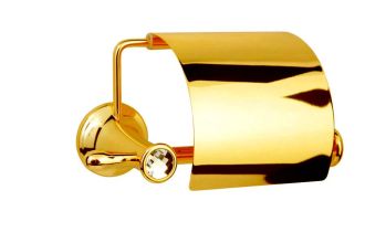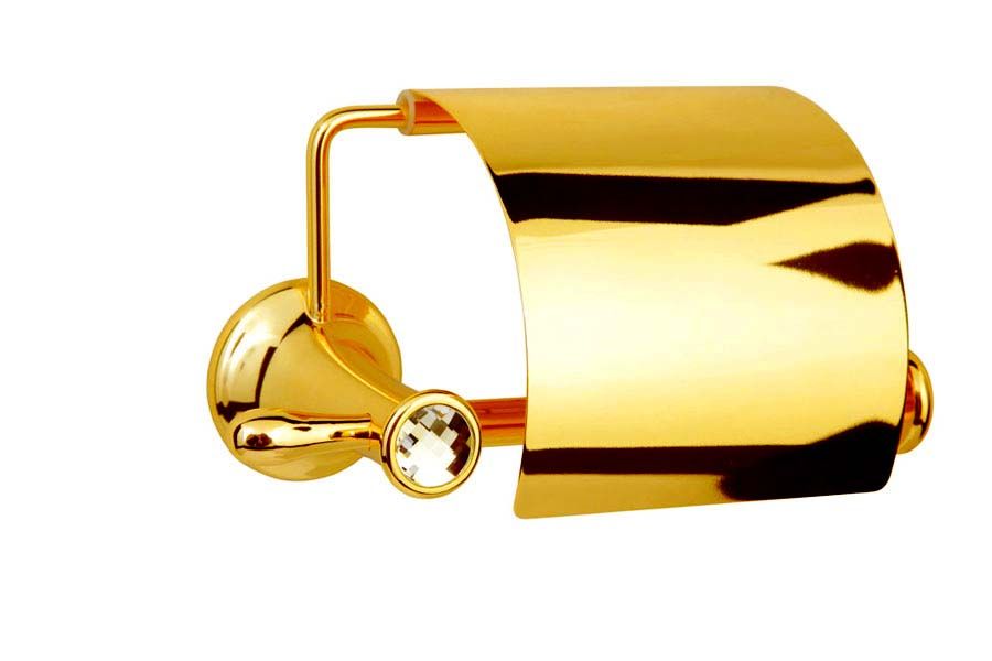 Изделие отличается плавными линиями и округлой формой, что гармонично вписывается как в классические, так и в современные интерьеры. Золотое покрытие не только добавляет визуальной лёгкости и блеска, но и обеспечивает повышенную стойкость к влаге, коррозии и механическим воздействиям. Крышка над рулоном предохраняет бумагу от попадания брызг, пыли и случайных загрязнений, поддерживая гигиеничность.