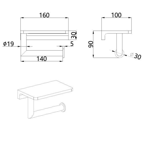 Держатель туалетной бумаги AQUAme Trento AQM7209MB чёрный матовый