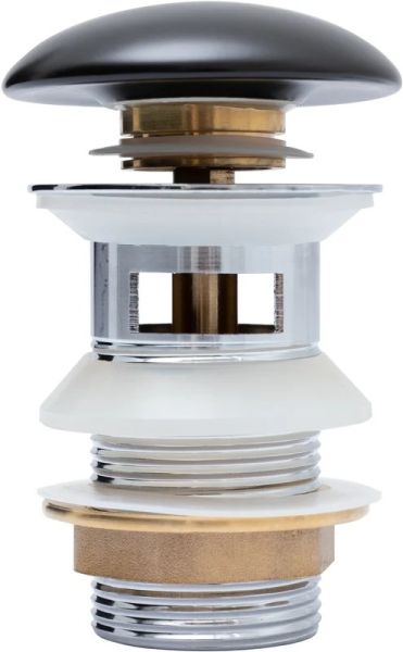Донный клапан латунь с переливом крышка керамика черный матовый (333929)
