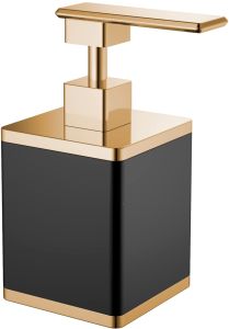 Дозатор Boheme 10969-B-G не только функциональный предмет интерьера ванной комнаты, но прекрасное эргономичное дополнение дизайна, как небольшого, так и крупного помещения. Модель отличается превосходным дизайном с соблюдением всех актуальных элементов современного стиля.Бренд Boheme в своей продукции использует идеальное, сочетание материалов (латунь / керамика) высокого качества, с полным отсутствием вредных для здоровья веществ. Золото / черный, основной цвет исполнения Boheme, отлично подходящий большинству дизайнерских решений. Важные размеры товара: ширина 8.3 см, глубина 11.8 см, высота 17.1 см. Прямоугольная форма 10969-B-G прослеживается во всех линиях и придает аксессуару неповторимый стиль. Дозатор размещается в особо удобном положении на столе благодаря настольному способу установки.Страной бренда Boheme является Италия, все товары производятся с выполнением соответствующих стандартов качества, что позволяет быть полностью уверенными в долговечности и надежности. Дозатор Boheme 10969-B-G правильный выбор в современном дизайне ванной, придающий уникальность всему помещению, при этом сохраняя функциональность.