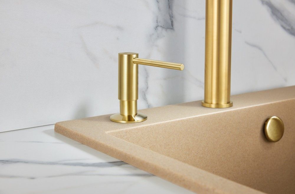 - Сатинированная ( брашированная ) текстура позволяет устанавливать дозатор Milacio как с каменными мойкам, так и в паре с мойками из нержавеющей стали с PVD покрытием любых брендов.