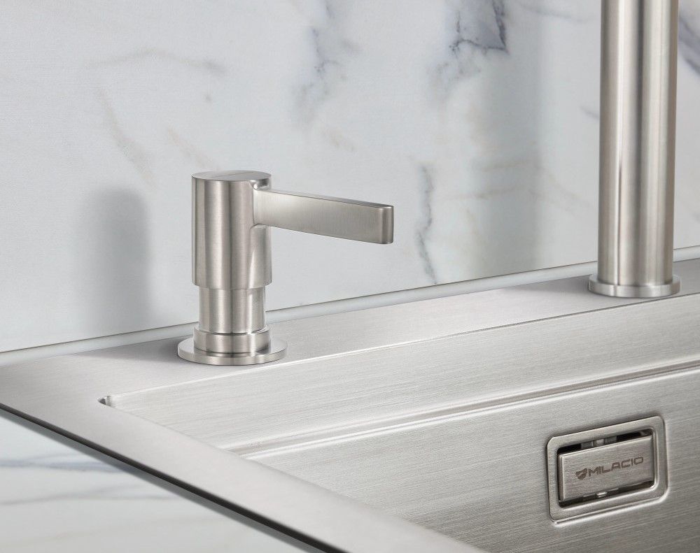 - Для того, чтобы установить дозатор, не понадобится много времени. Он легко встраивается в мойку или столешницу при помощи монтажной трубки и прижимной гайки.