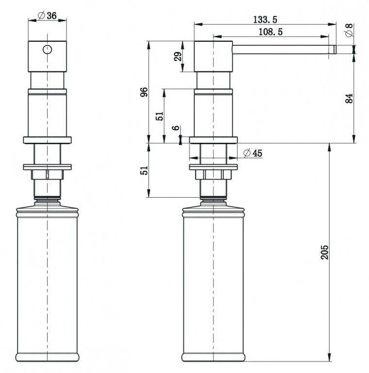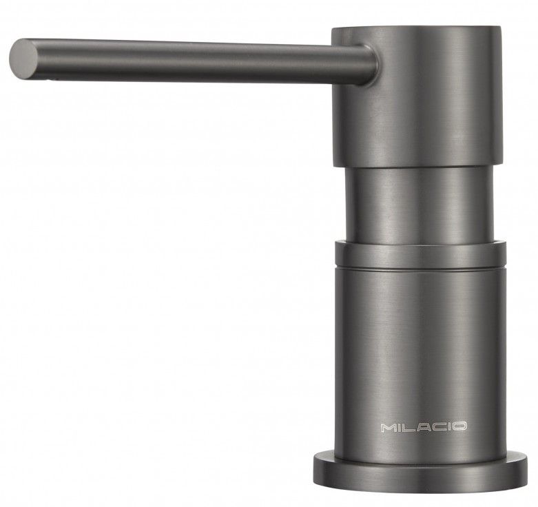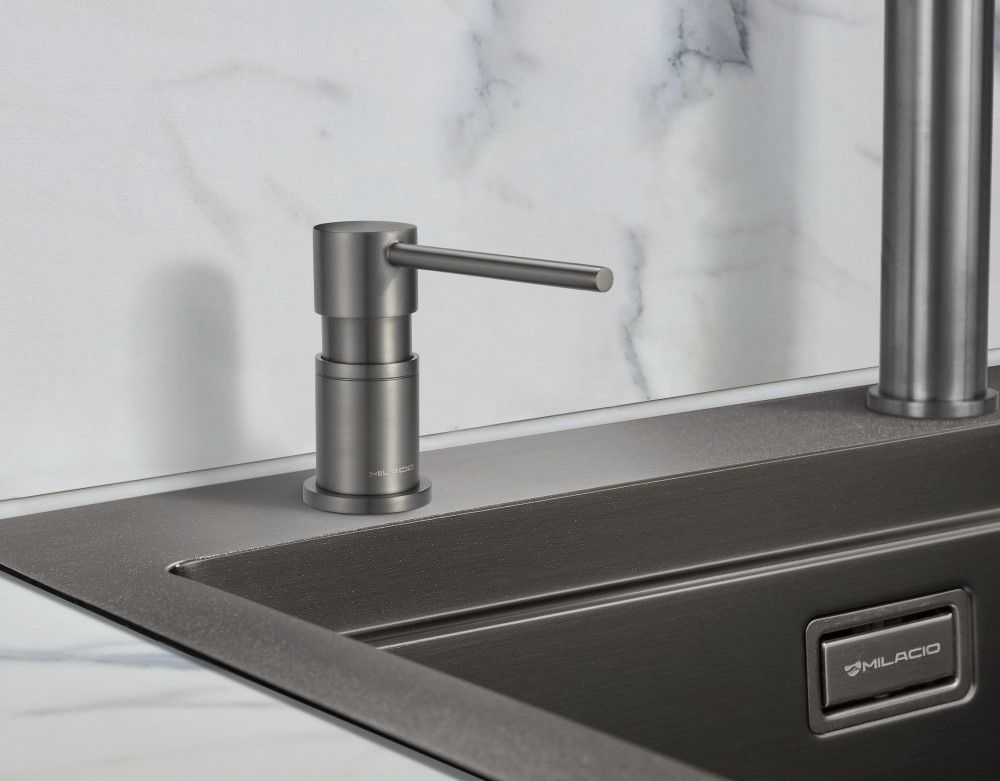 - Матовая текстура позволяет устанавливать дозатор Milacio как с каменными мойкам, так и в паре с мойками из нержавеющей стали с PVD покрытием любых брендов.
