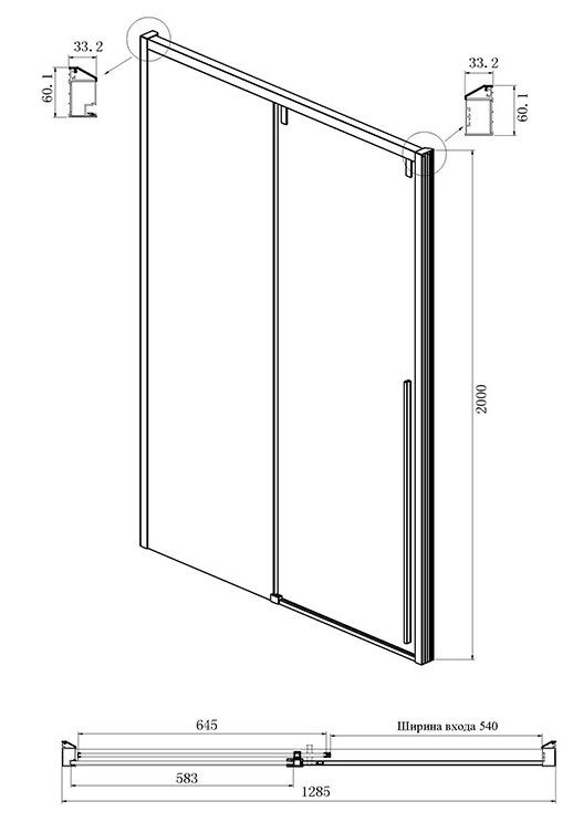 - Исполнение полотна: прозрачное закаленное стекло, толщиной 8 мм.