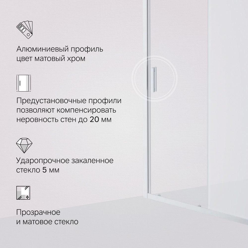 Душевая дверь отличается практичностью и функциональностью. Изделие произведено из ударопрочного закаленного стекла, которое надежно фиксируется в нержавеющий алюминиевый профиль при помощи системы скрытых креплений.