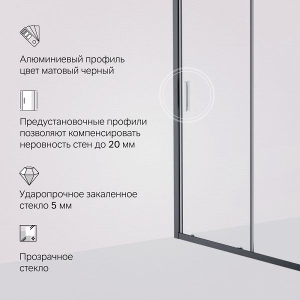Душевая дверь Am.Pm Gem W90G-140-1-195BT 140 см цвет профиля чёрный матовый стекло прозрачное купить