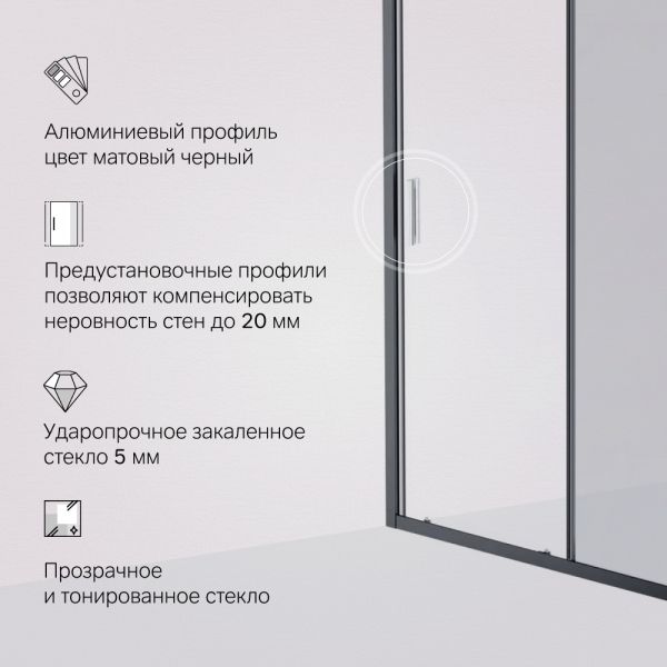 Душевая дверь Am.Pm Gem W90G-150-1-195BG 150 см цвет профиля чёрный матовый стекло тонированное купить