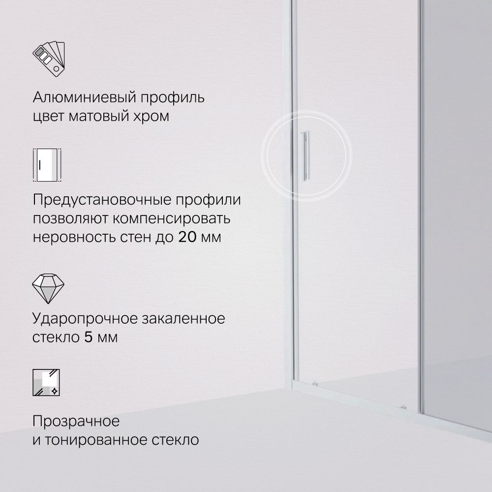 Душевая дверь Am.Pm Gem W90G-150-1-195MG 150 см цвет профиля хром матовый стекло тонированное купить