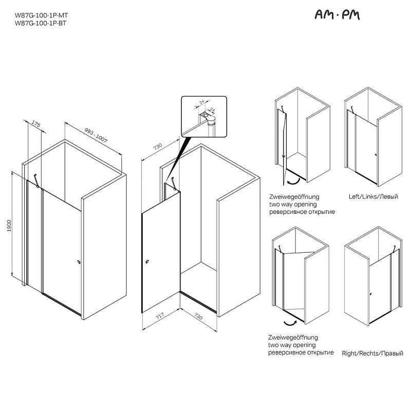 Душевая дверь AM.PM Sunny W87G-100-1P-MT прозрачное стекло профиль серебристый 100x190Душевые двери в нишу из коллекции Sunny сделают ванную комнату вашим тайным местом силы и перезагрузки. Эстетика и функциональность - то, что моментально приковывает взгляды. Исключительный дизайн, к которому хочется прикоснуться. Цвет профиля - серебристый. Размер (Ш/Г/В): 1000x24x1900 мм. Материал перегородки с дверью - прозрачное стекло, алюминий. Толщина стекла - 5 мм.
