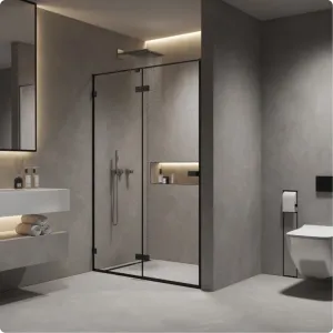 Душевая дверь AQUAme AQM7408-2-12 120 см профиль чёрный матовый стекло прозрачное купить