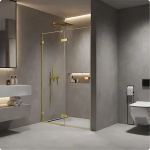 Душевая дверь AQUAme AQM7408-3-14 140 см профиль золото брашированное стекло прозрачное купить