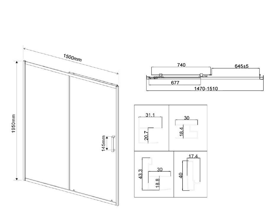 Душевая дверь City VDS-5CT150MT, 1500, хром, стекло текстурное