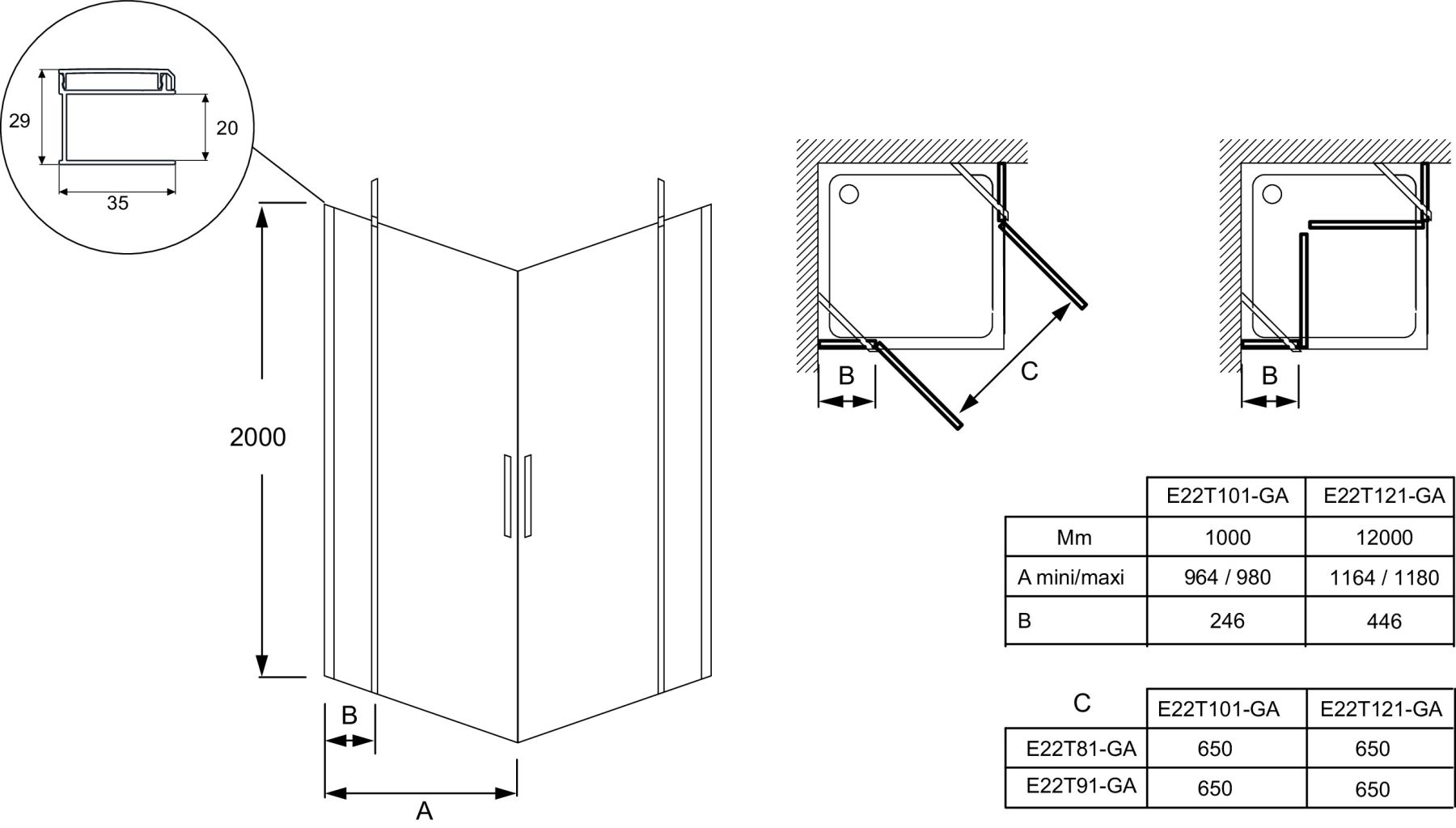 Душевая дверь Jacob Delafon CONTRA E22T101-GA 100*200