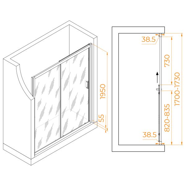 Размеры с диапазоном регулировок: 1700-1730 мм