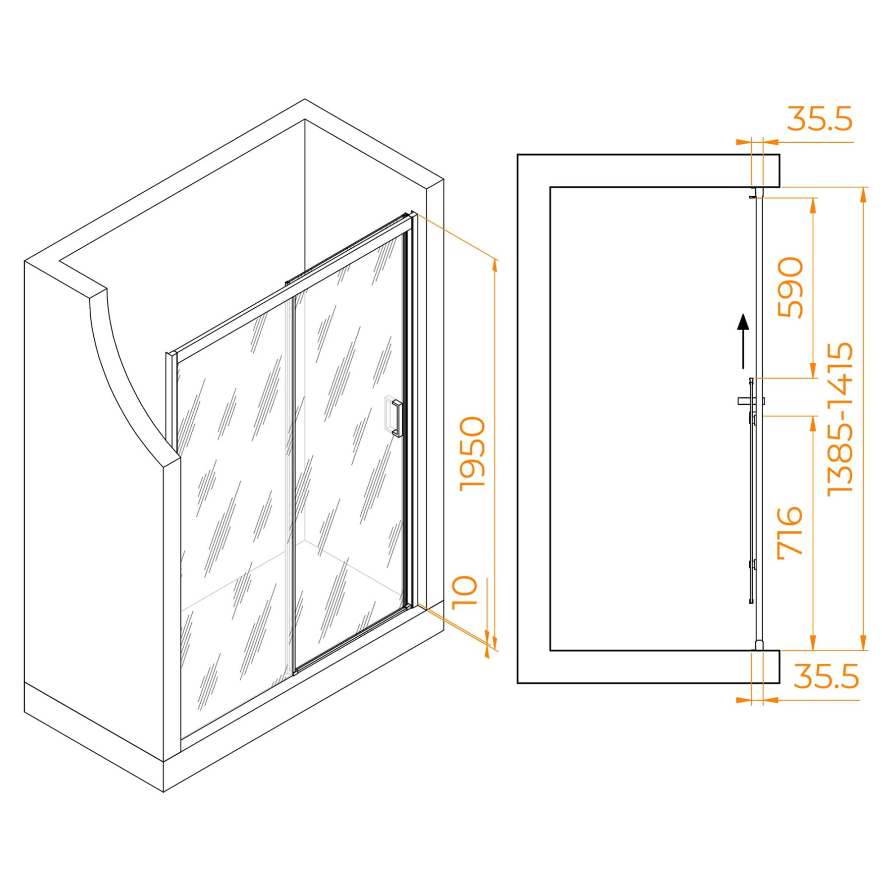 Высота двери: 1950 мм — подходит для большинства ванных комнат.