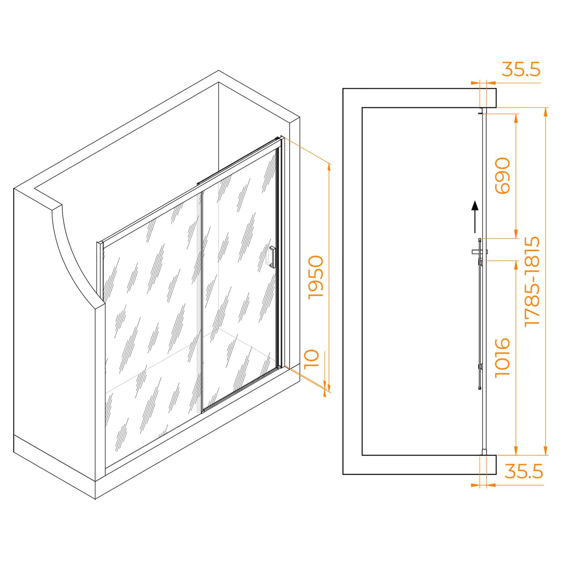 Высота двери: 1950 мм — подходит для большинства ванных комнат.