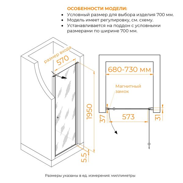 Регулируемый профиль позволяет установить дверь даже на неровные стены.