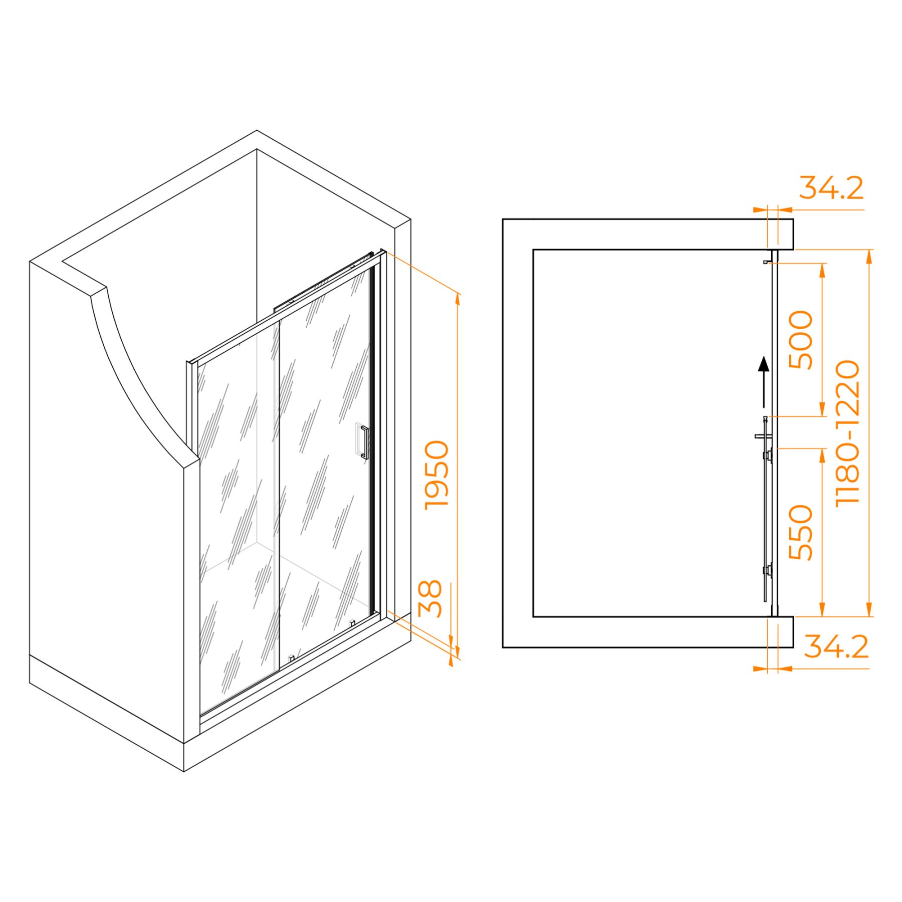 Высота двери: 1950 мм — подходит для большинства ванных комнат.