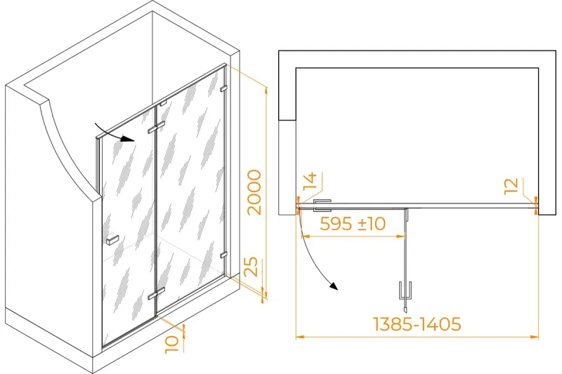 Высота двери: 200 см — обеспечивает комфортный доступ в душевую зону.