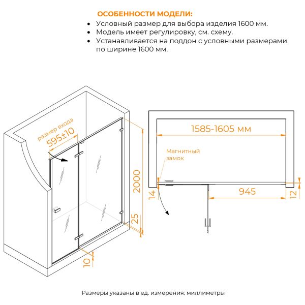 Ширина дверного проема: 1600 мм