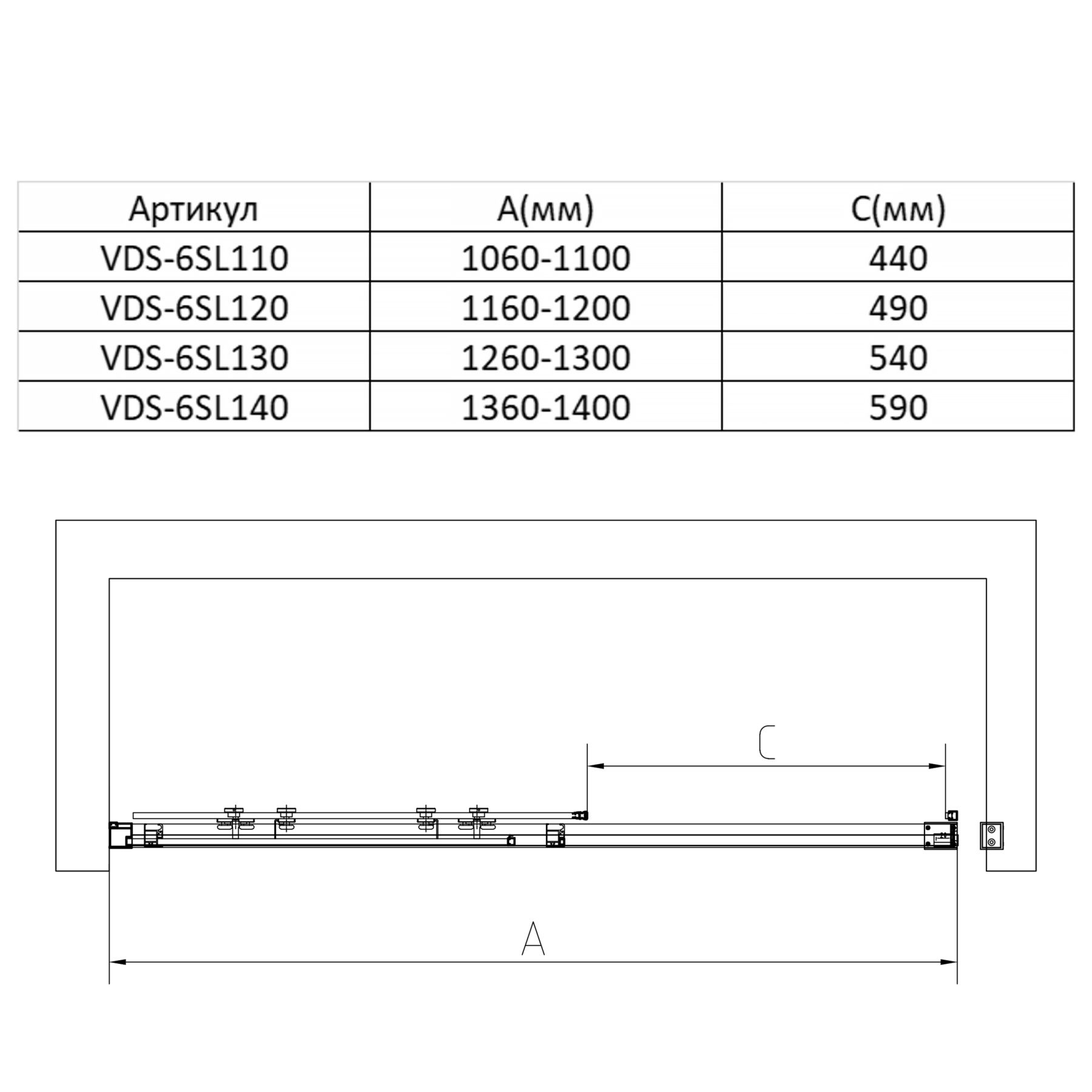 Душевая дверь Slim 8mm VDS-6SL110CL, 1100, хром, стекло прозрачное