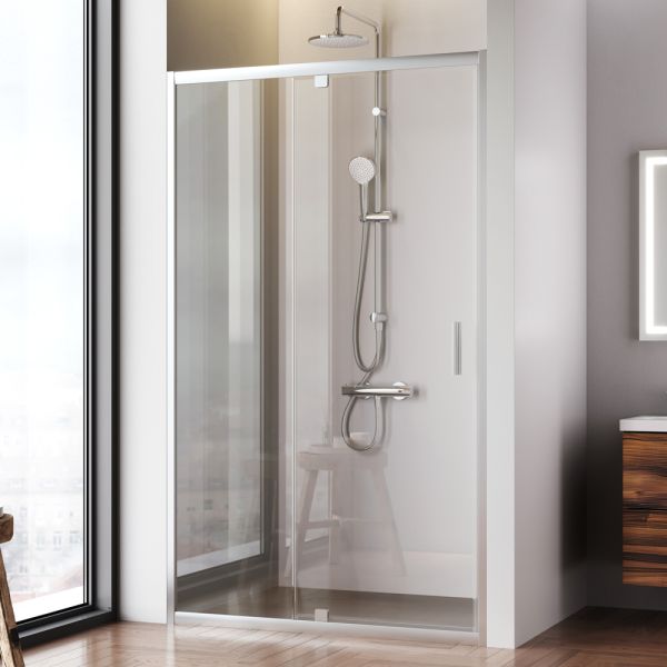 Универсальный монтаж (на левую/правую сторону) позволяет установить дверь в помещениях с различной планировкой. Надежные металлические петли гарантируют плавное открывание двери и увеличивают срок службы. Дверь выполнена из сверхпрочного закаленного стекла. Толщина фиксированного стекла 5 мм, толщина двери 6 мм.