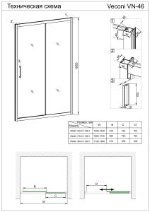 Душевая дверь Veconi Vianno VN-46BC, 1500x1950, Никель брашинг, стекло прозрачное