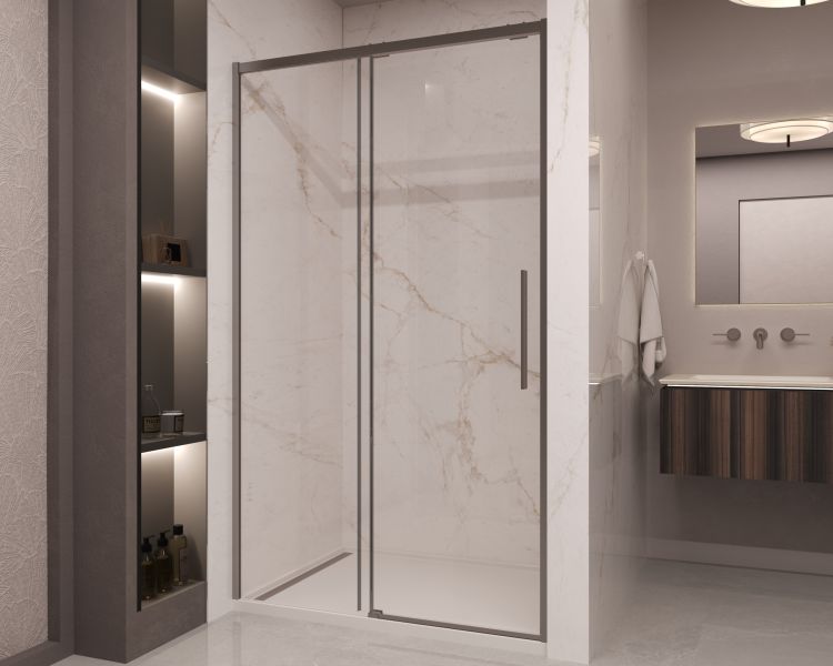 Душевая дверь Vincea Stella VDS-1ST140CLGM, 1400, вороненая сталь, стекло прозрачное