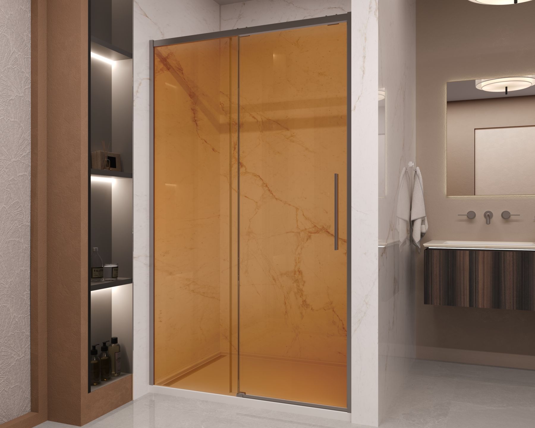 Душевая дверь Vincea Stella VDS-1ST120GSGM, 1200, вороненая сталь, стекло янтарь
