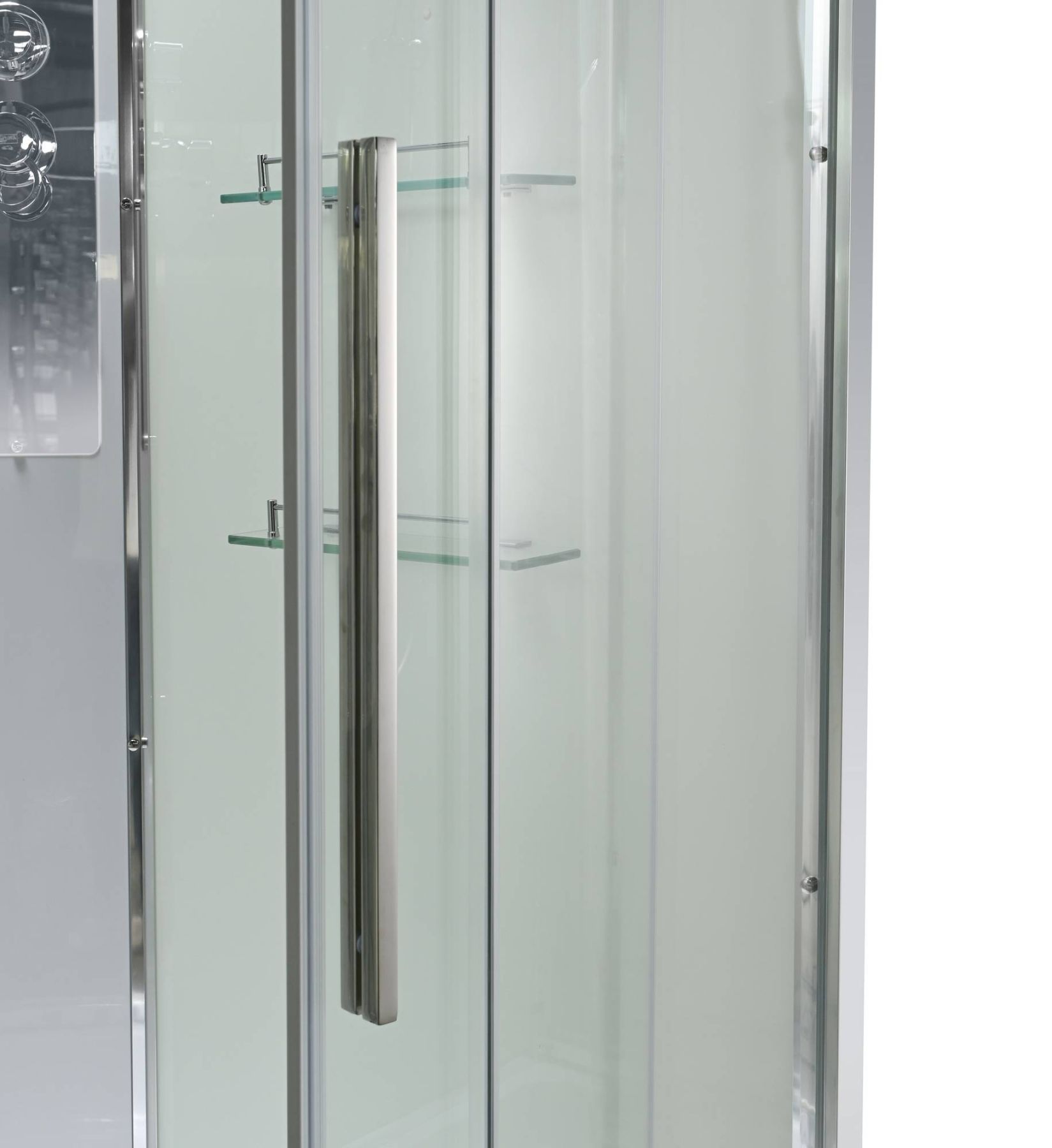 Стильная душевая кабина AvaCan сочетает в себе высокую функциональность, практичность и надежность. При изготовлении применяется безопасное закаленное стекло, надежно фиксируемое алюминиевым профилем.Профиль сделан из алюминия повышенной прочности. Сборка без силикона (увеличивает срок службы, защищает от протечек), внутренняя сборка (облегчает установку и ревизию; позволяет установить в ограниченном пространстве и обойтись без демонтажа других сантехнических приборов), смеситель резьбовой (без хомутов). Съемный экран поддона (позволяет осуществлять подключение и ревизию сифона).Двойные металлические ролики дверей (распределение нагрузки на два ролика, увеличивают срок службы). Душевая штанга(позволяет регулировать по высоте ручную лейку), ручная арома-лейка с витамином С (картридж в комплекте,есть возможность замены или удаления картриджа), полочки(из стекла, с ограничителем), сифон с гидрозатвором, сенсорный пульт управления с функциями: блютуз, LED подсветка, радио, вытяжка, гидромассаж спины, тропический (верхний) душ.