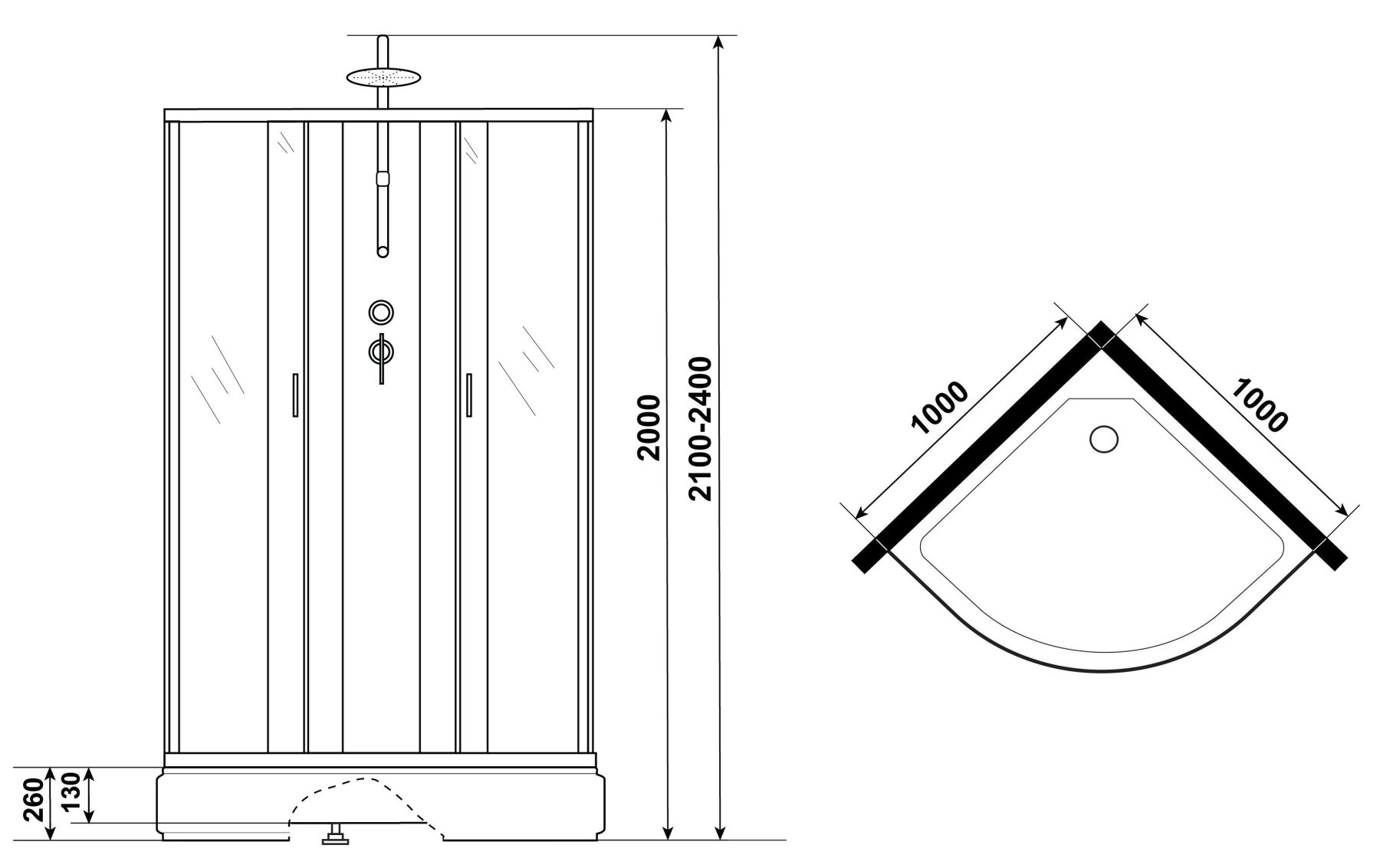 - Размеры (ДхШхВ) 100x100х210-240