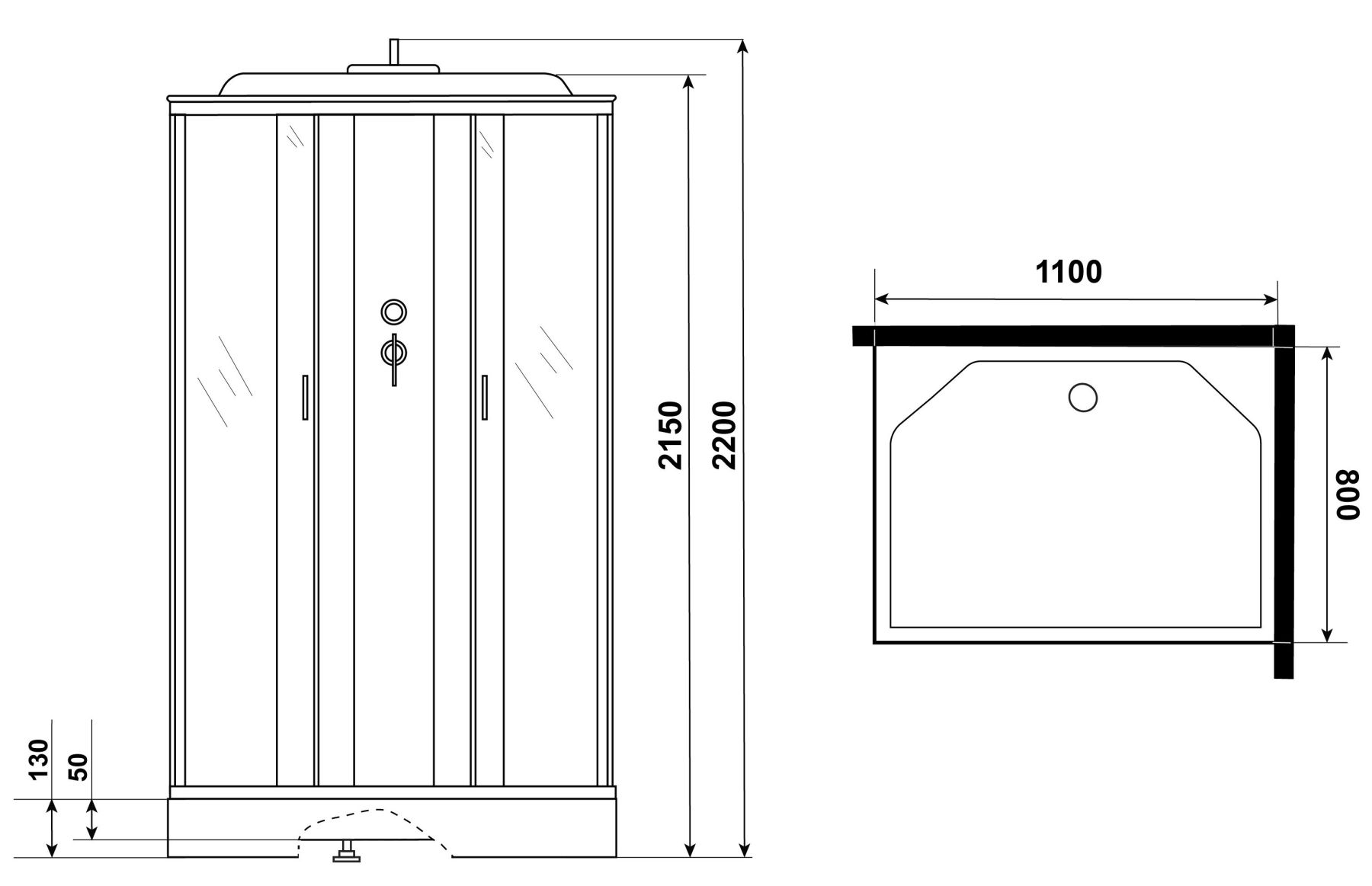 Душевая кабина Niagara NG-43185-14QF с гидромассажем 110x80см серебро/матовое