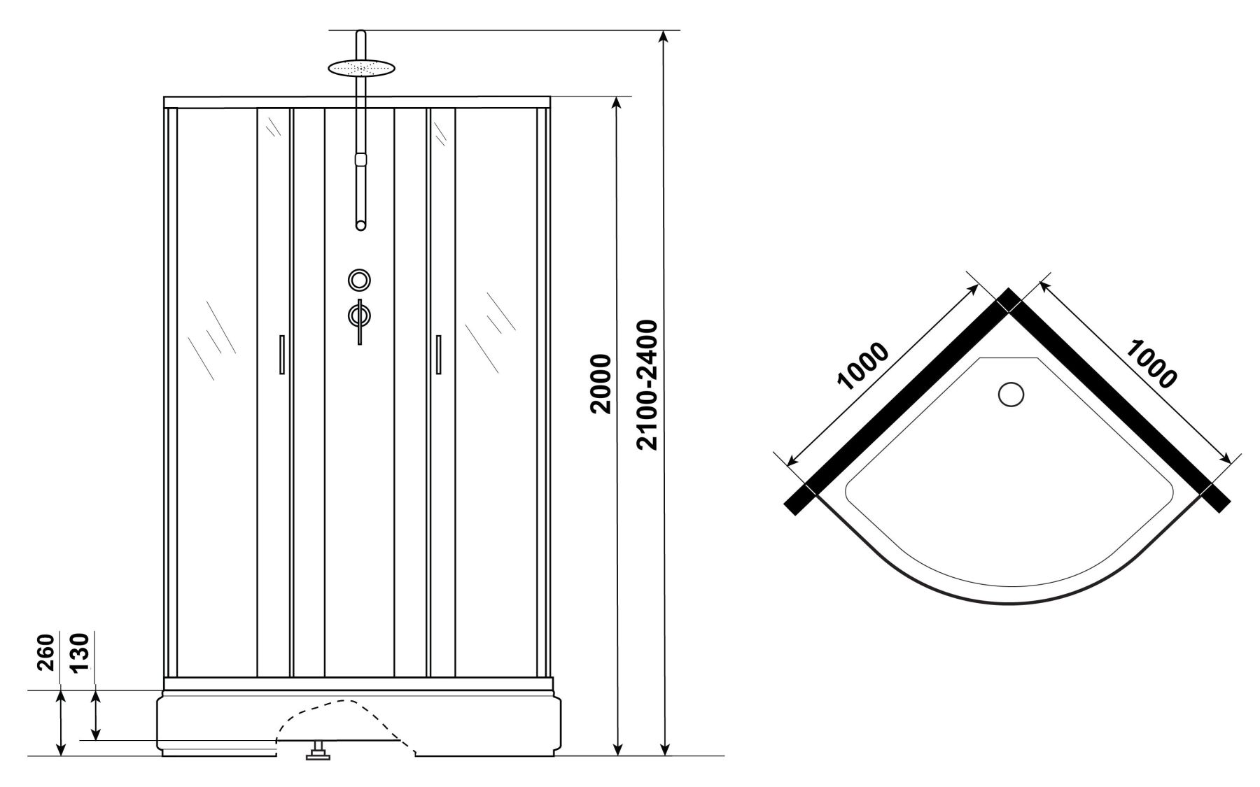 - Размеры (ДхШхВ) 100x100х210-240