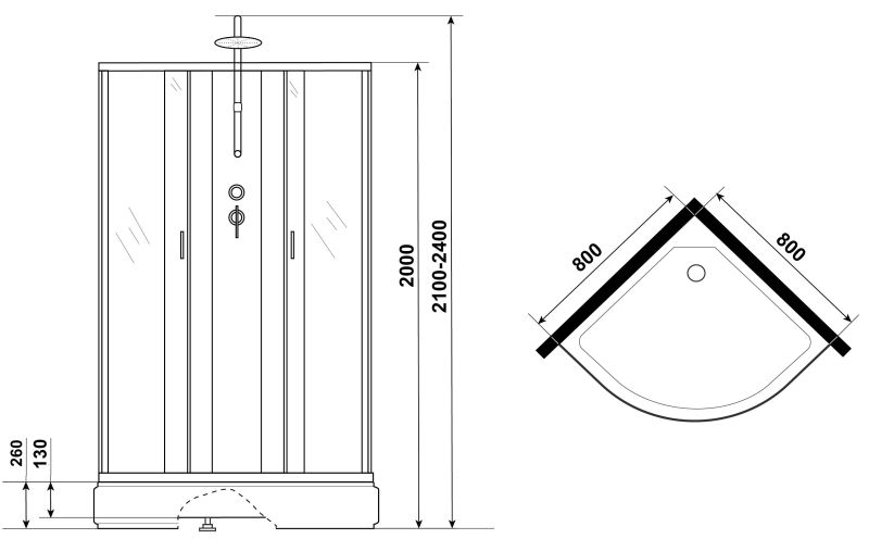 - Размеры (ДхШхВ) 80x80х210-240